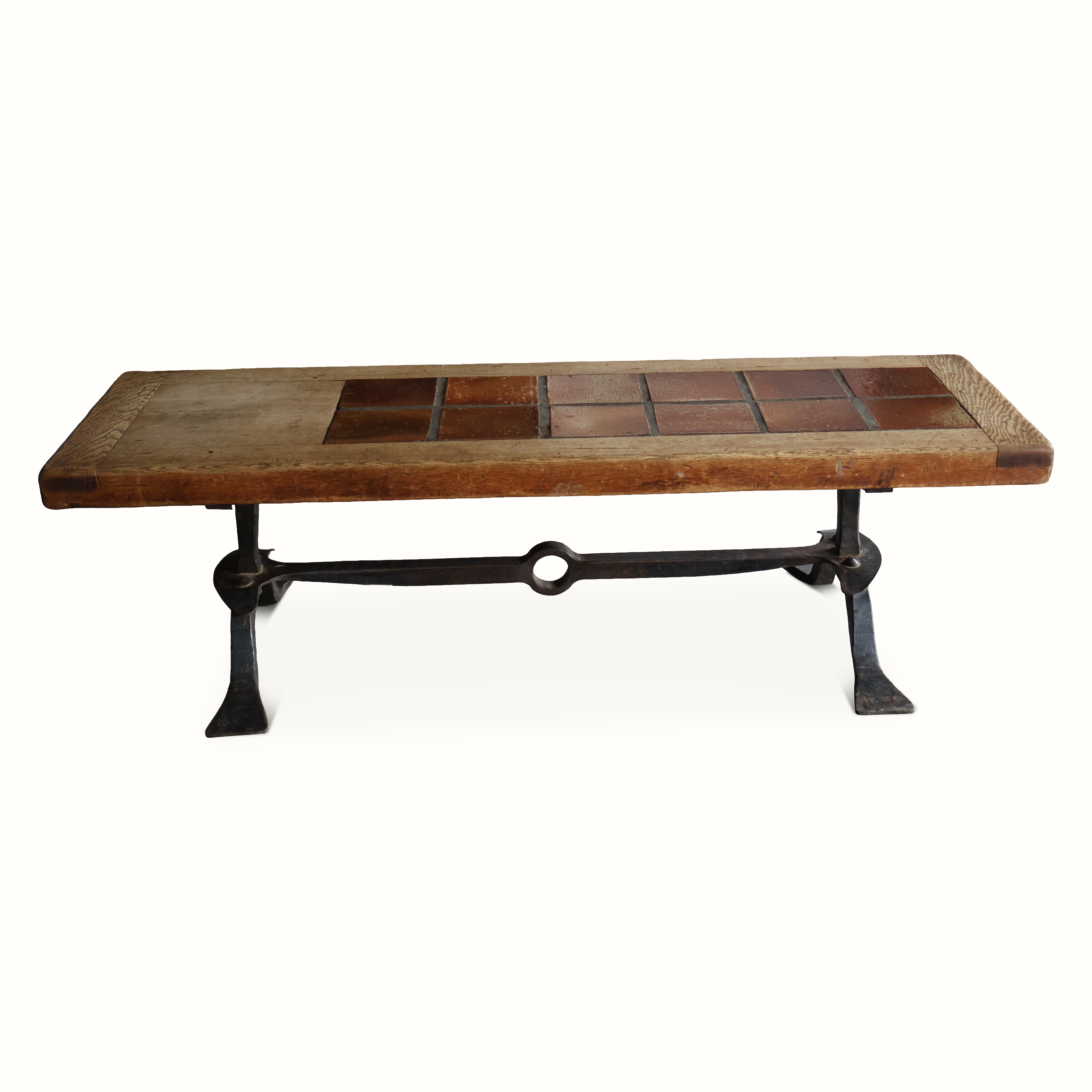 Forged Iron, Oak and Tile Coffee Table