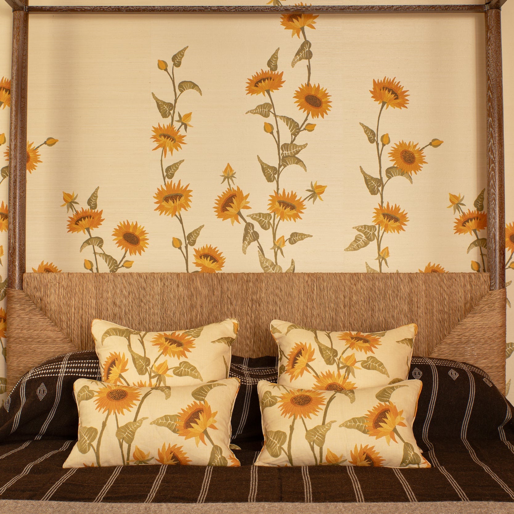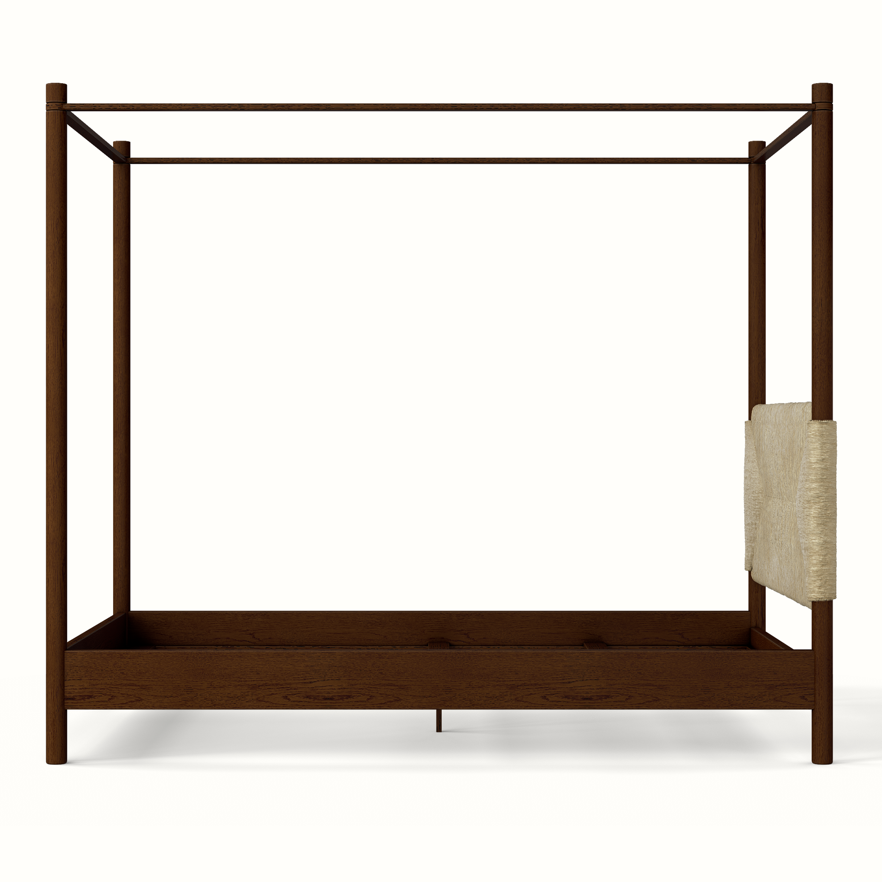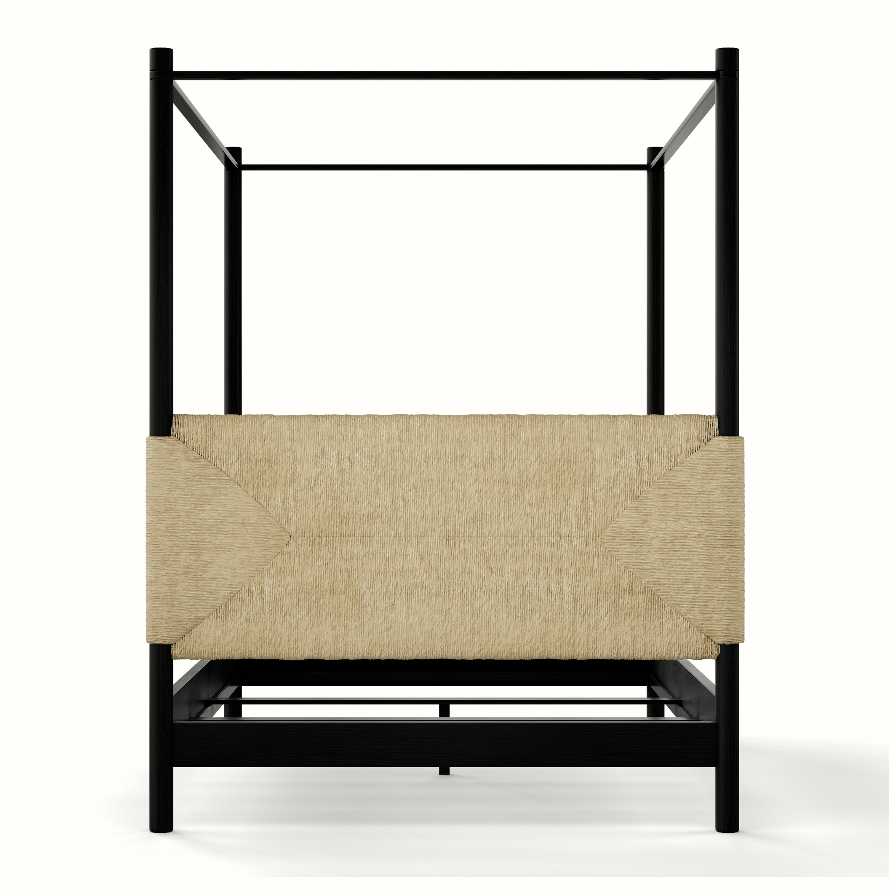 Our beautiful Perriand 4 Poster Bed is handmade in Los Angeles with a handwoven rush headboard and foot board and a solid oak frame. The Perriand 4 Poster anchors a bedroom with texture and style. Available as a Queen, King, and California King.
