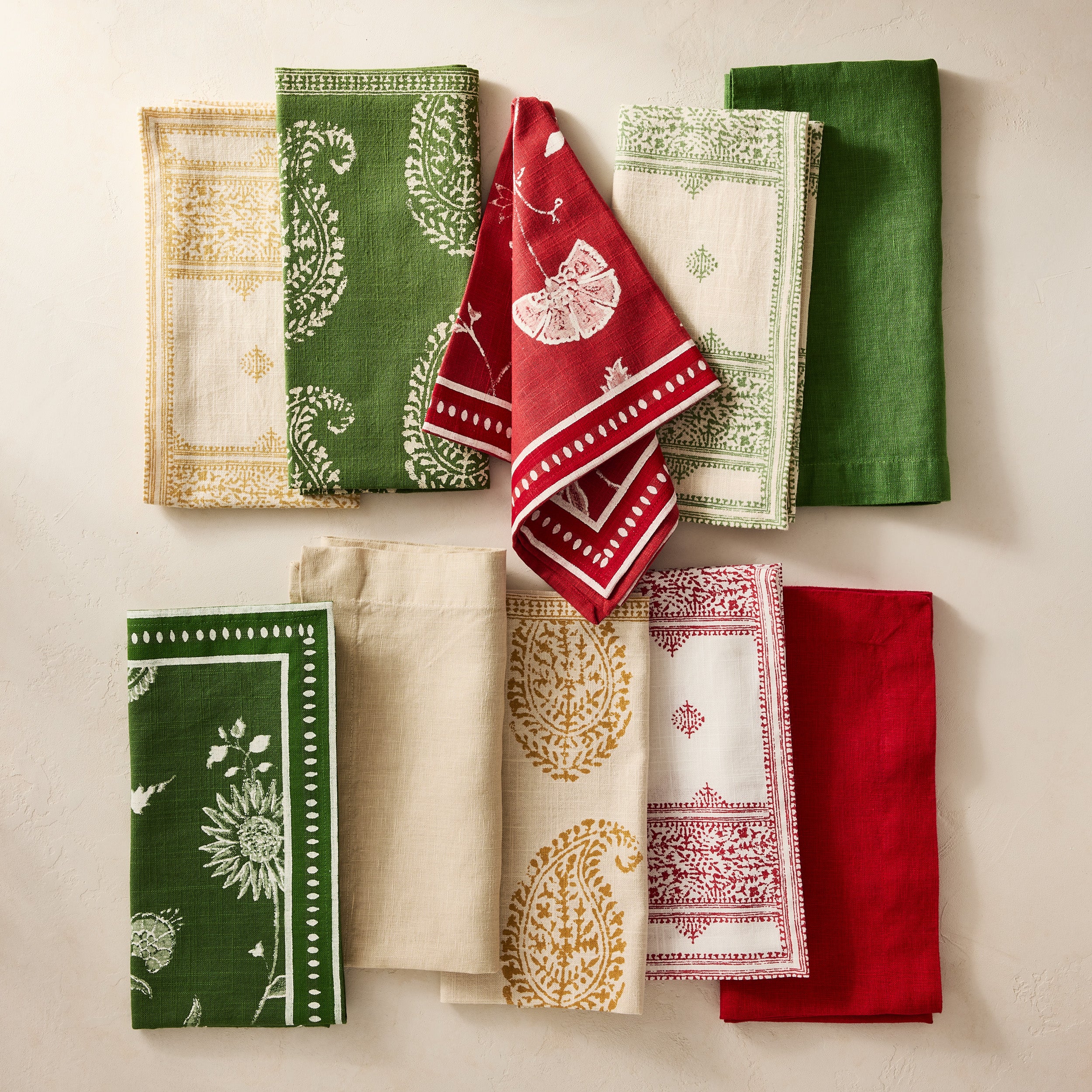 Peter Dunham + Hudson Grace Olive Green Indian Chintz Printed Napkin