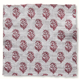 Indoor/Outdoor Pouf in Peter Dunham Textiles Persis Red on Natural